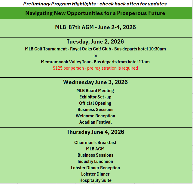 The Memramcook Valley Tour: $125 per person Bus will depart from the Delta Beausejour Hotel at 11am.